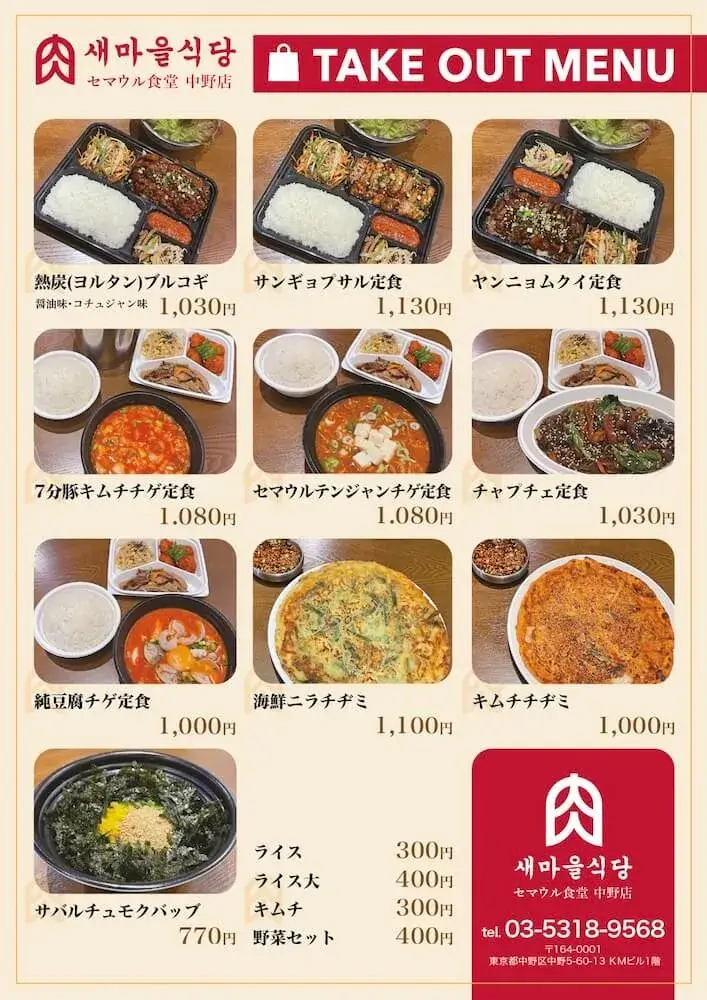 いつもセマウル食堂 中野店をご愛顧いただき有り難うございます。オープン以来、お客様よりご要望の多かったテイクアウトをスタートいたしました!ぜひご自宅でもセマウル食堂の味を存分にお楽しみください!